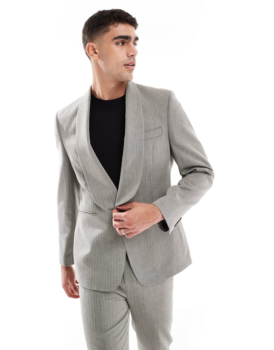 The ASOS DESIGN Grey Linen Shawl Suit Jacket is ideal for business, smart-casual, formal.
