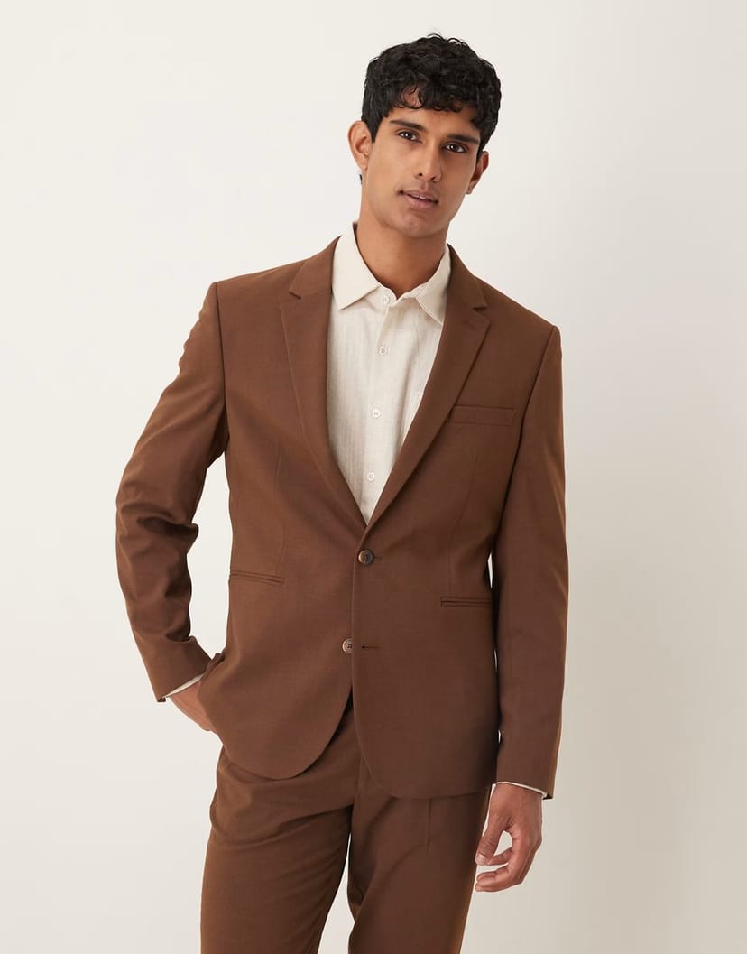 The ASOS DESIGN Slim Fit Suit Jacket in Brown is ideal for work, business, formal.