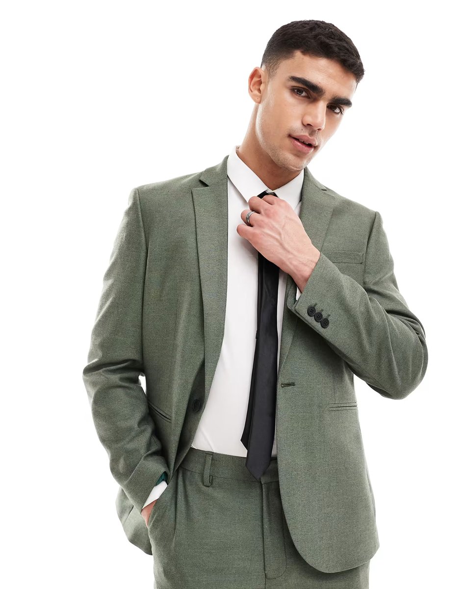 The ASOS DESIGN Slim Suit Jacket in Forest Green is ideal for business, casual.