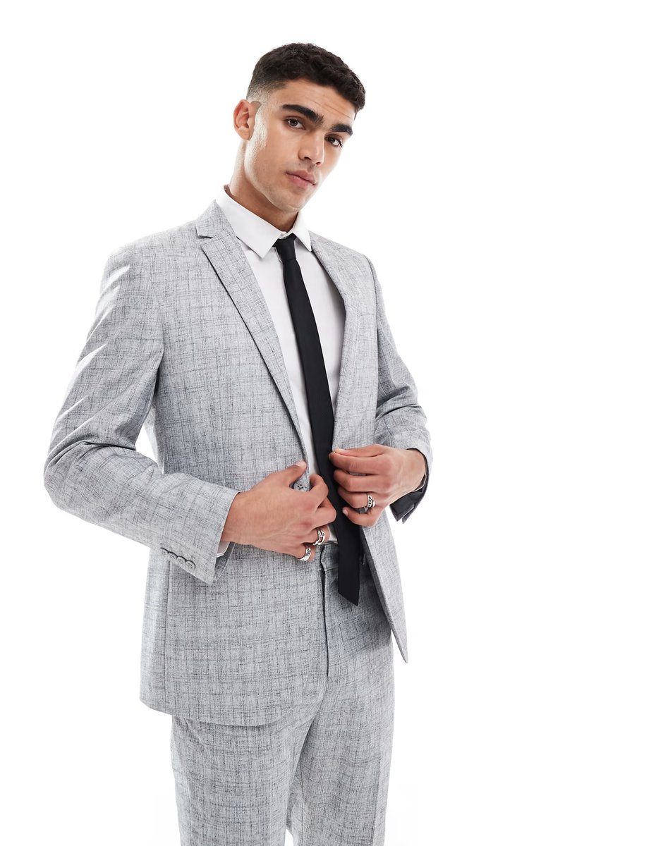 The ASOS Slim Fit Jacket in Light Grey Texture is ideal for business-casual, casual.
