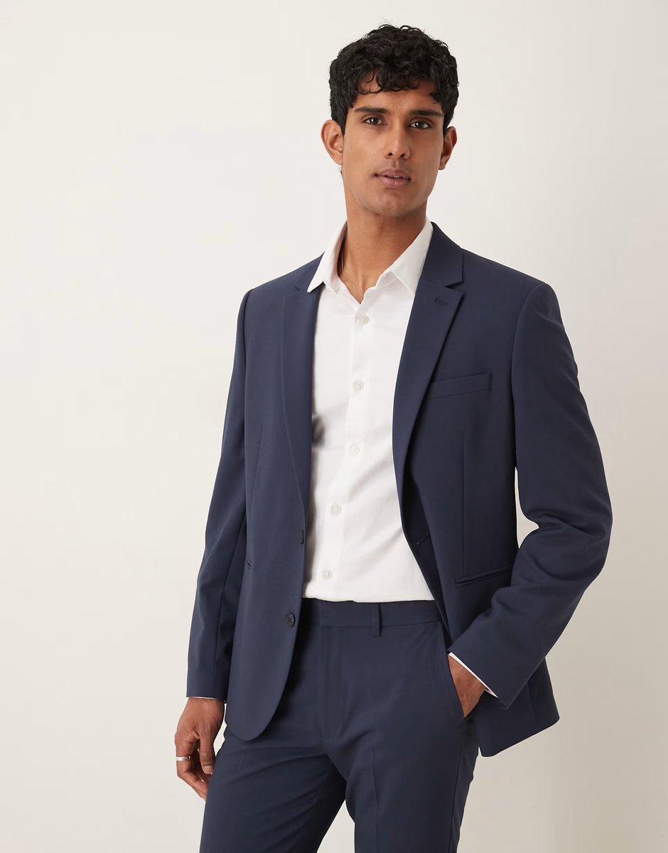 The ASOS Slim Fit Suit Jacket in Navy is ideal for business, evening, formal.