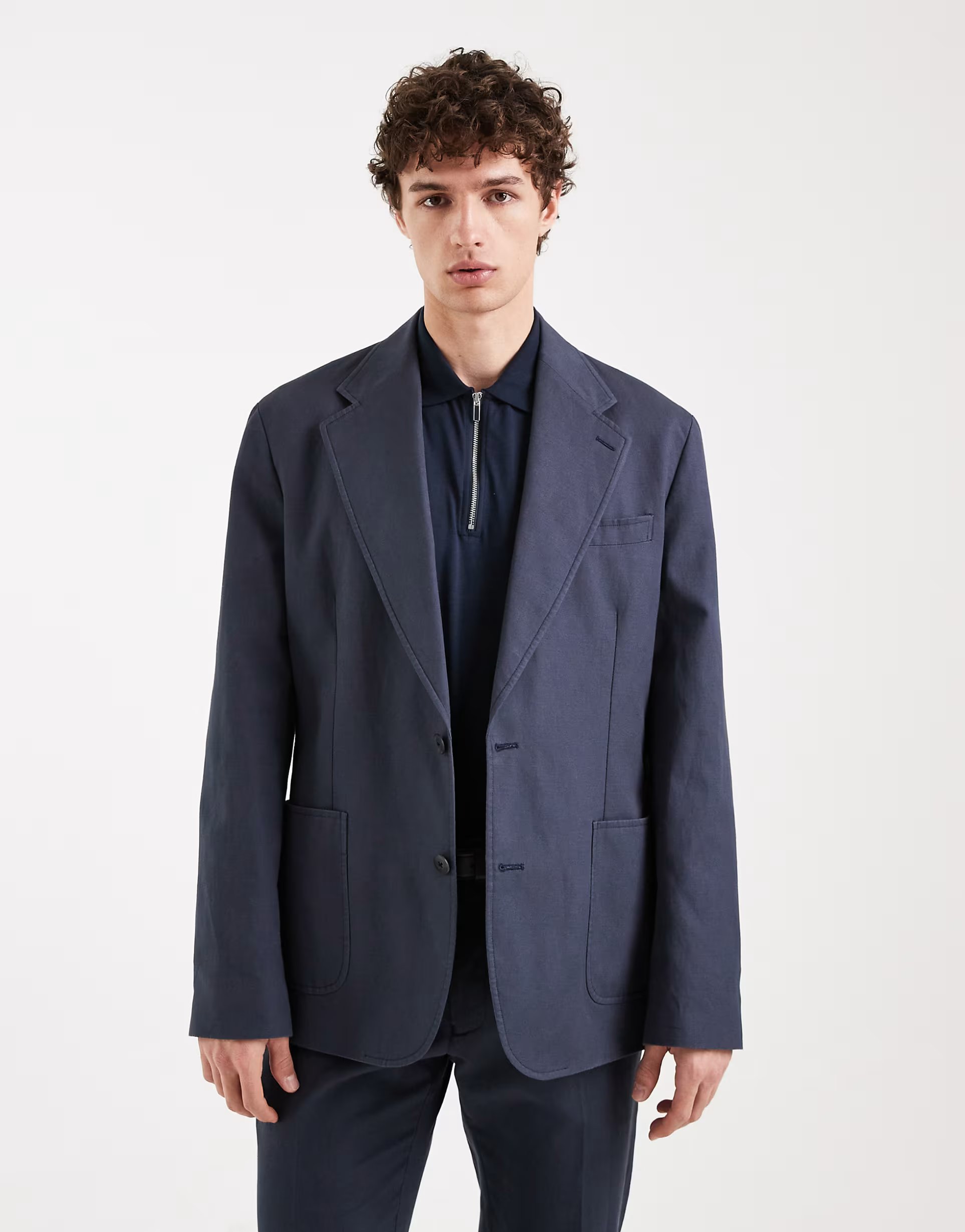 The ASOS DESIGN Slim Fit Jacket in Navy is made from cotton, linen.