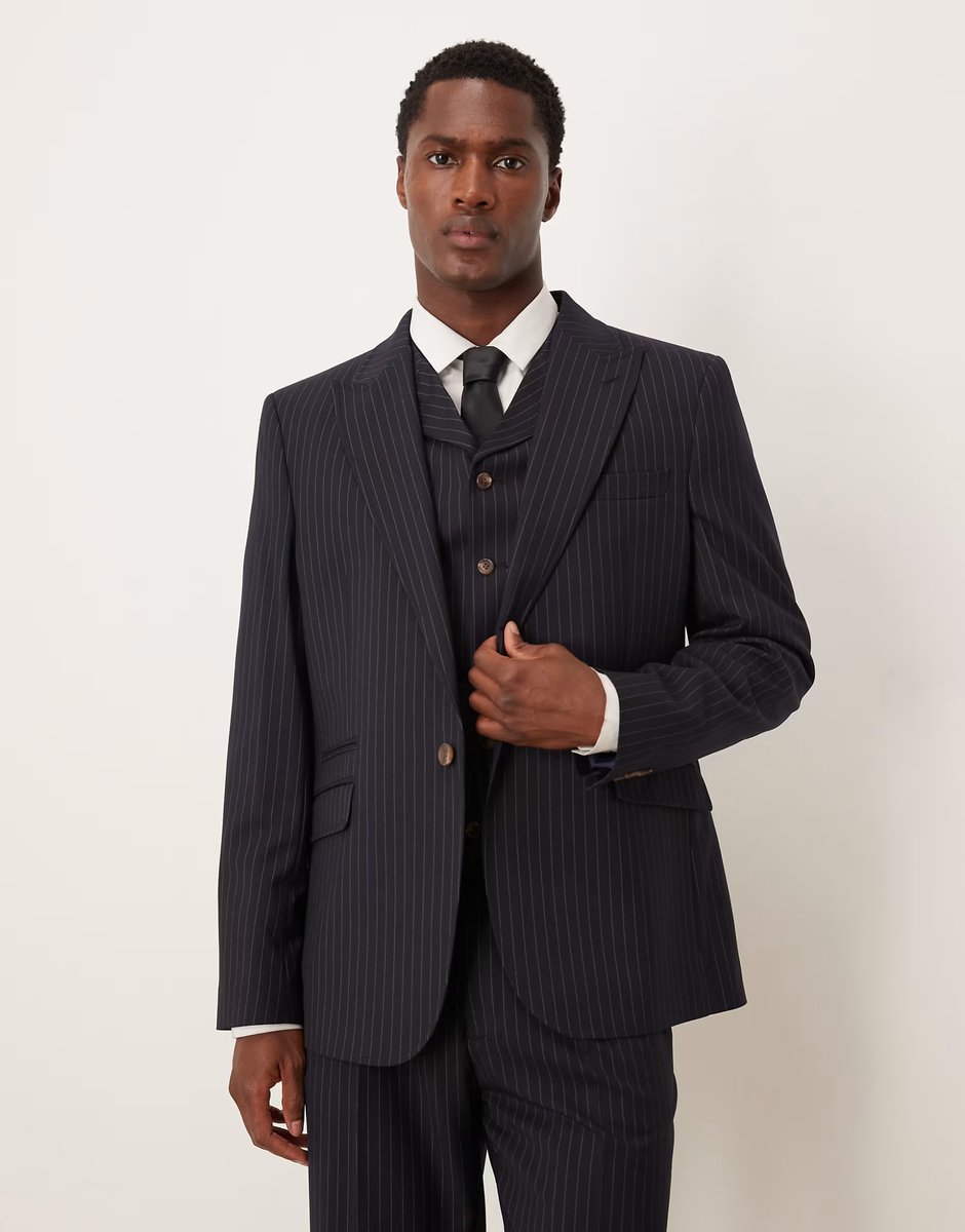 The ASOS Slim Pinstripe Suit Jacket in Navy is ideal for business, casual.