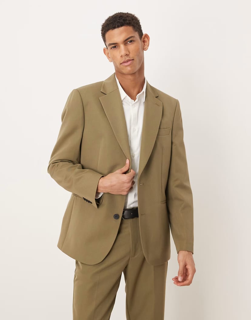 The ASOS Slim Suit Jacket in Olive Green is ideal for work, business.