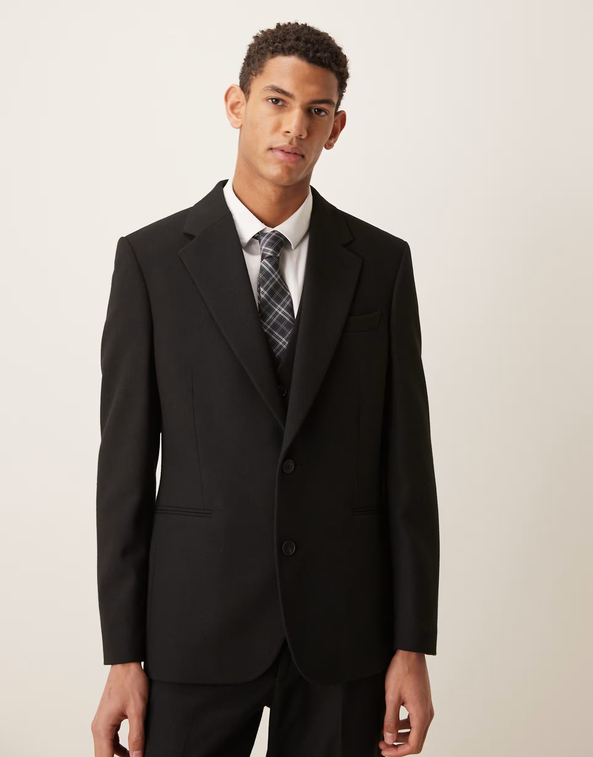 The ASOS Slim Suit Jacket with Wool in Black is ideal for business, formal.