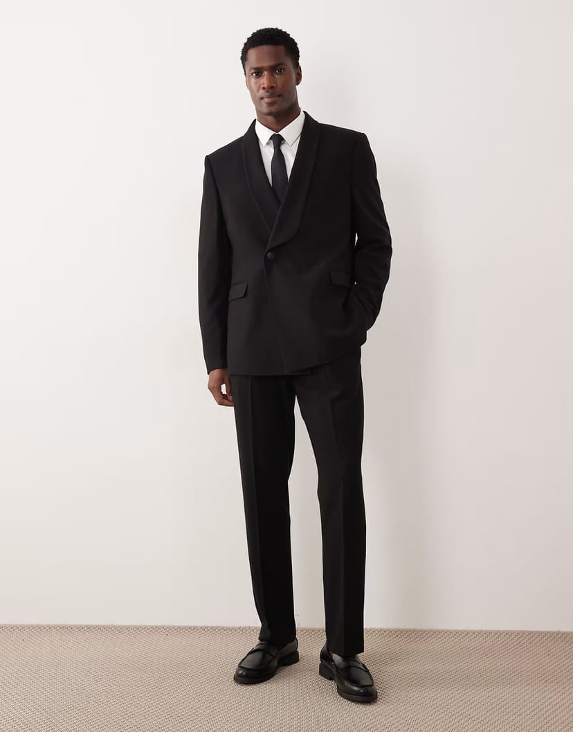The ASOS DESIGN Slim Suit Trousers in Black Crepe is available in sizes XXXL, XXL, XL, XS, L, M, S.