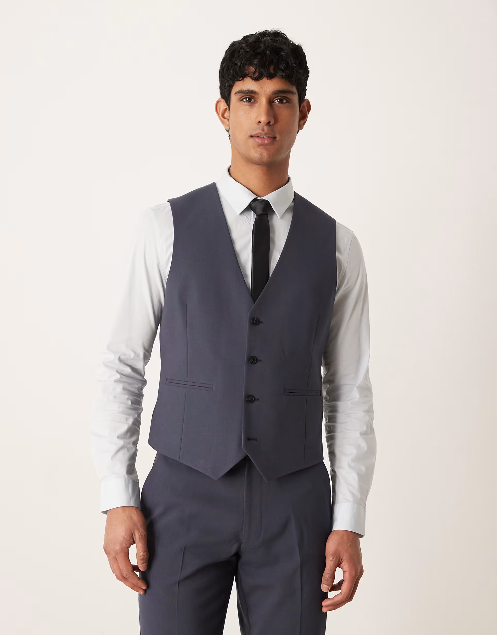The ASOS DESIGN Slim Suit Waistcoat in Navy is made from polyester.