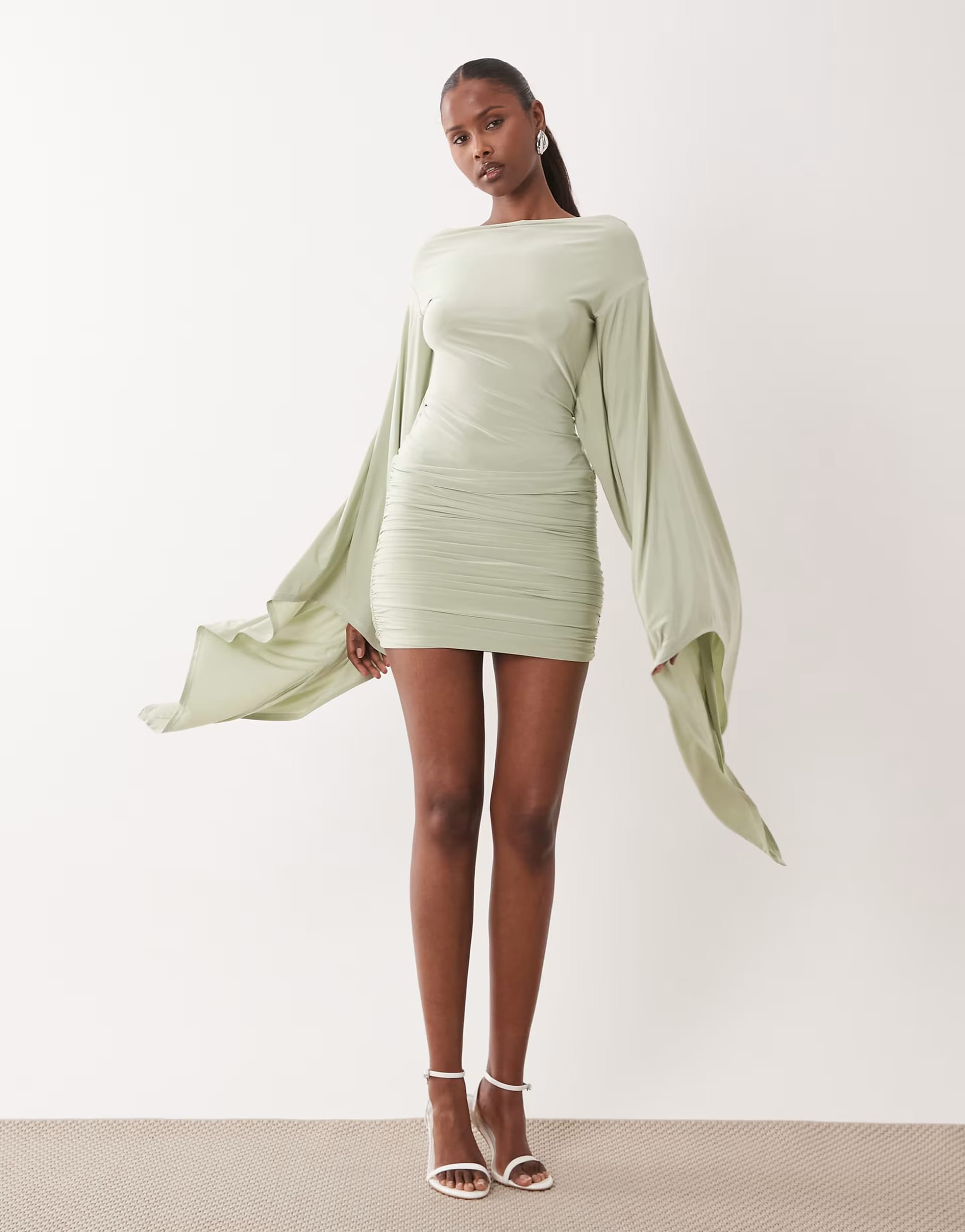 “Pair with white strappy heels and a silver clutch for an evening event.”