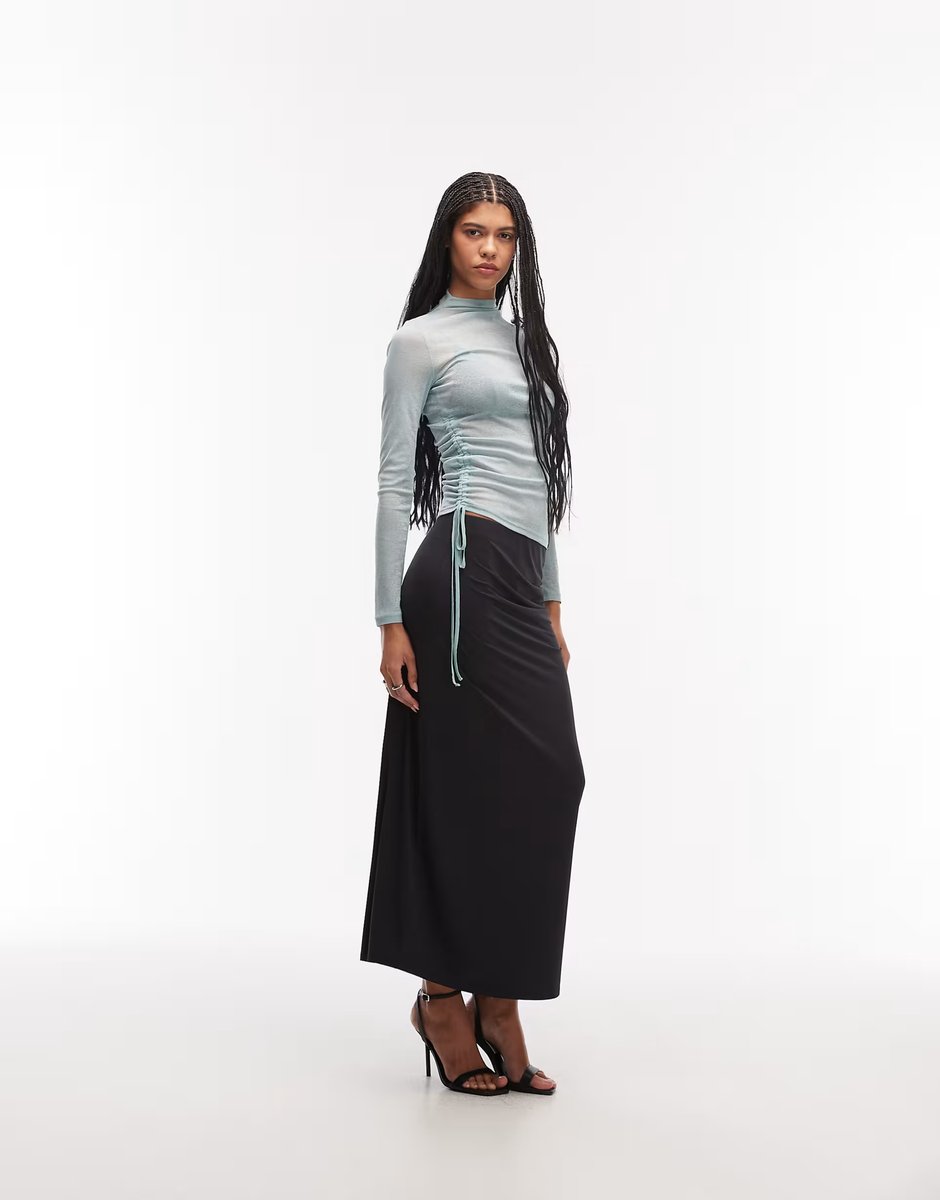 The ASOS DESIGN Ruche Side Midi Skirt is ideal for casual, evening, formal, work.