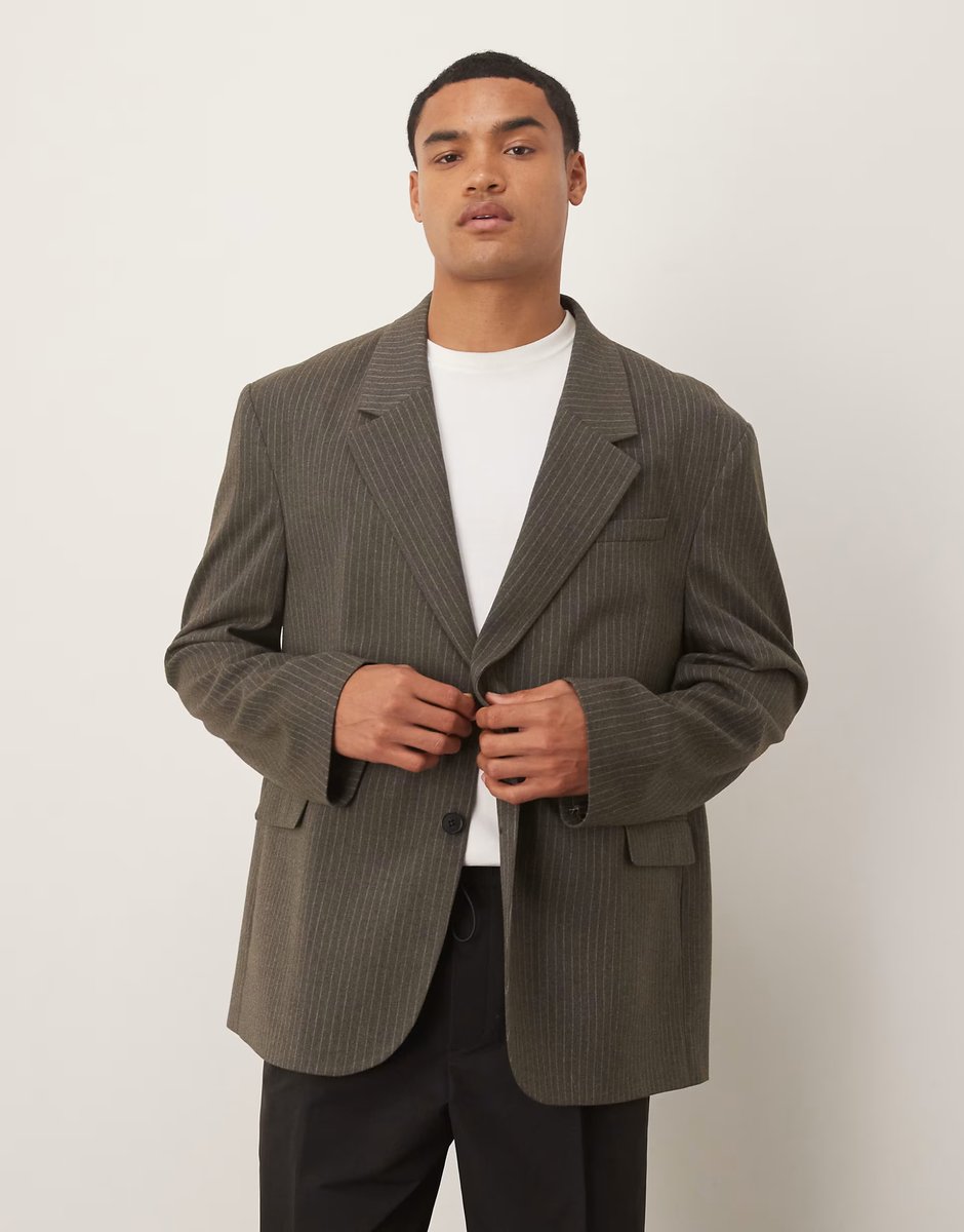 The ASOS DESIGN Slouchy Oversized Blazer in Grey Pinstripe is ideal for casual, business-casual.