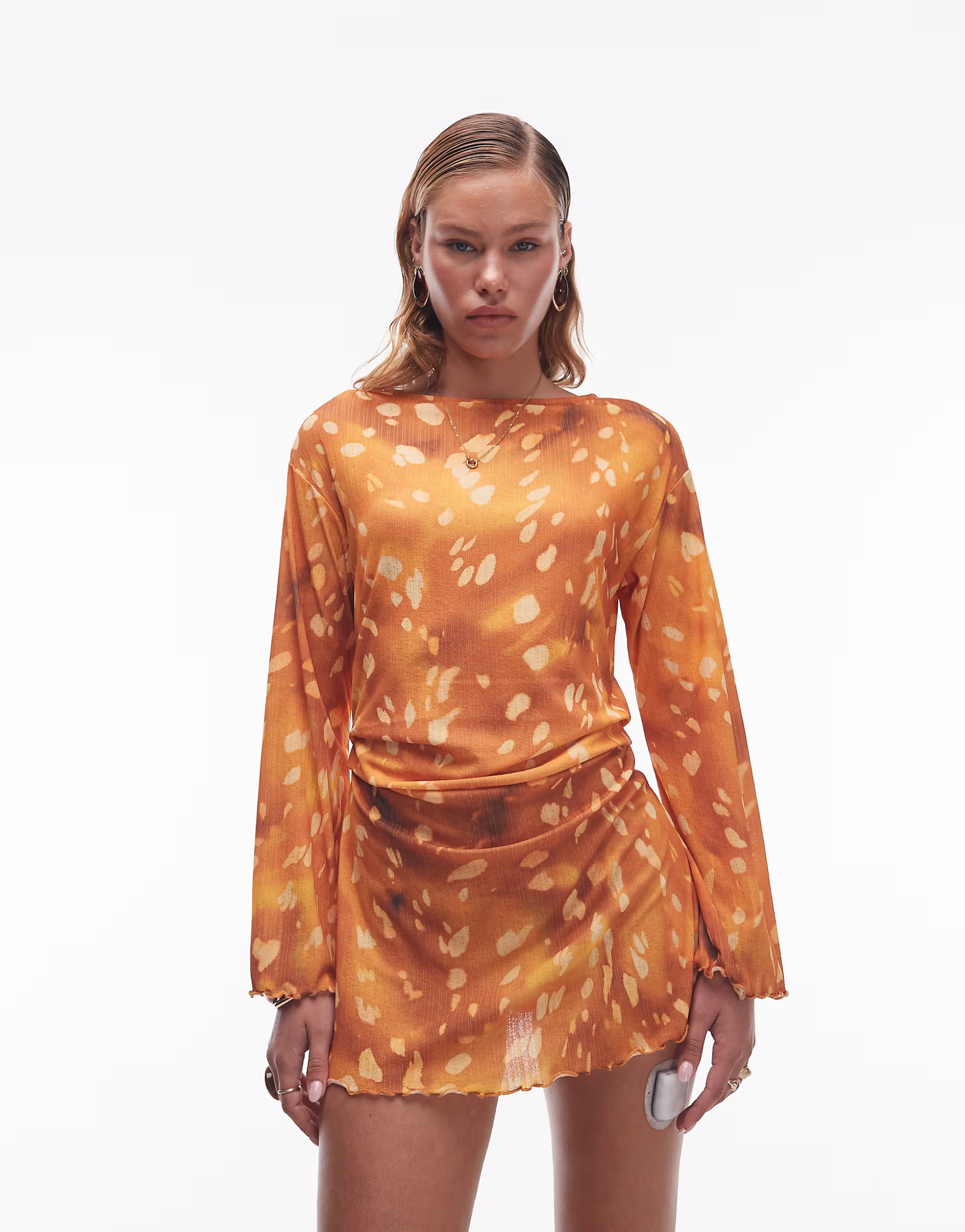 The ASOS Slouchy Rib Mini Dress in Tie Dye Print is made from cotton, polyester.