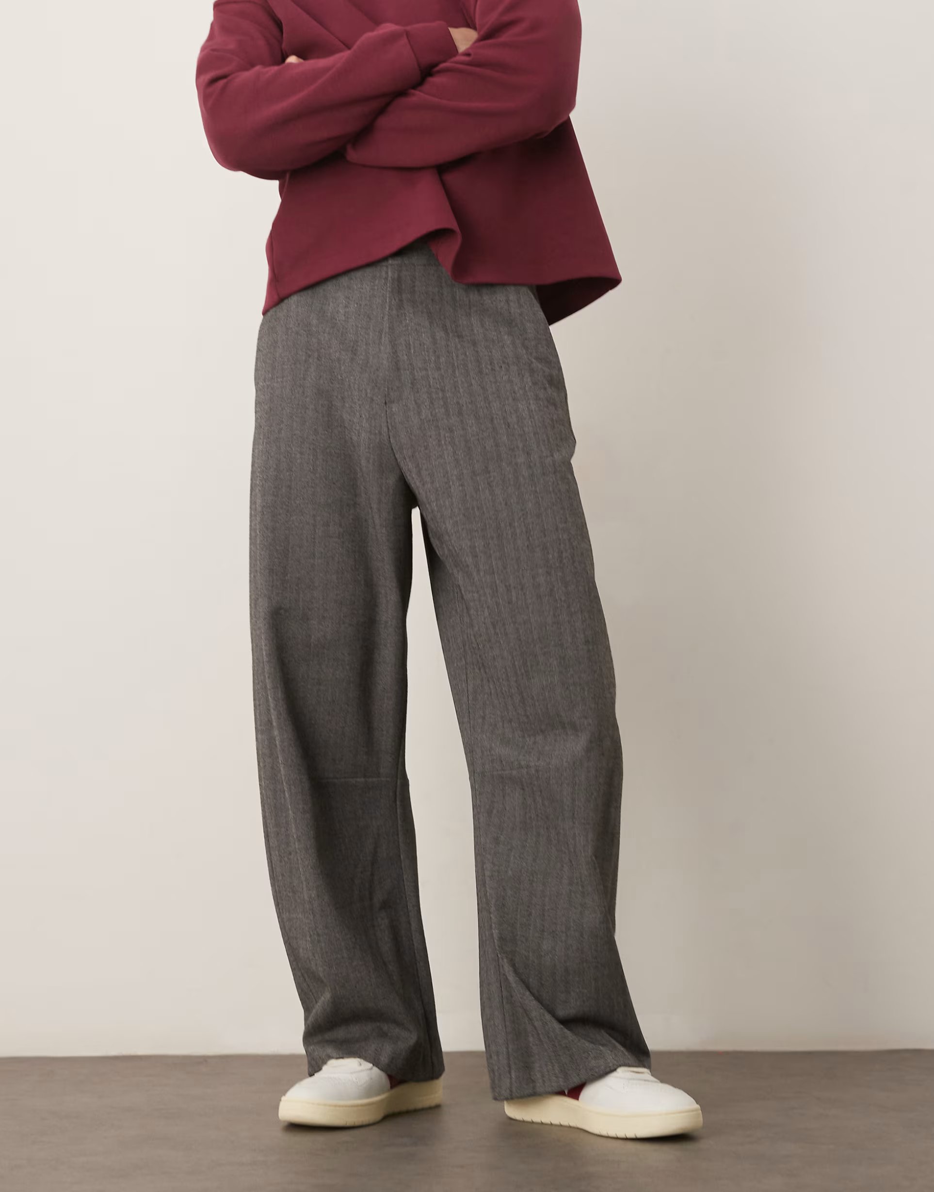 The ASOS Smart Barrel Leg Trousers in Black Herringbone is ideal for work, business, smart-casual.