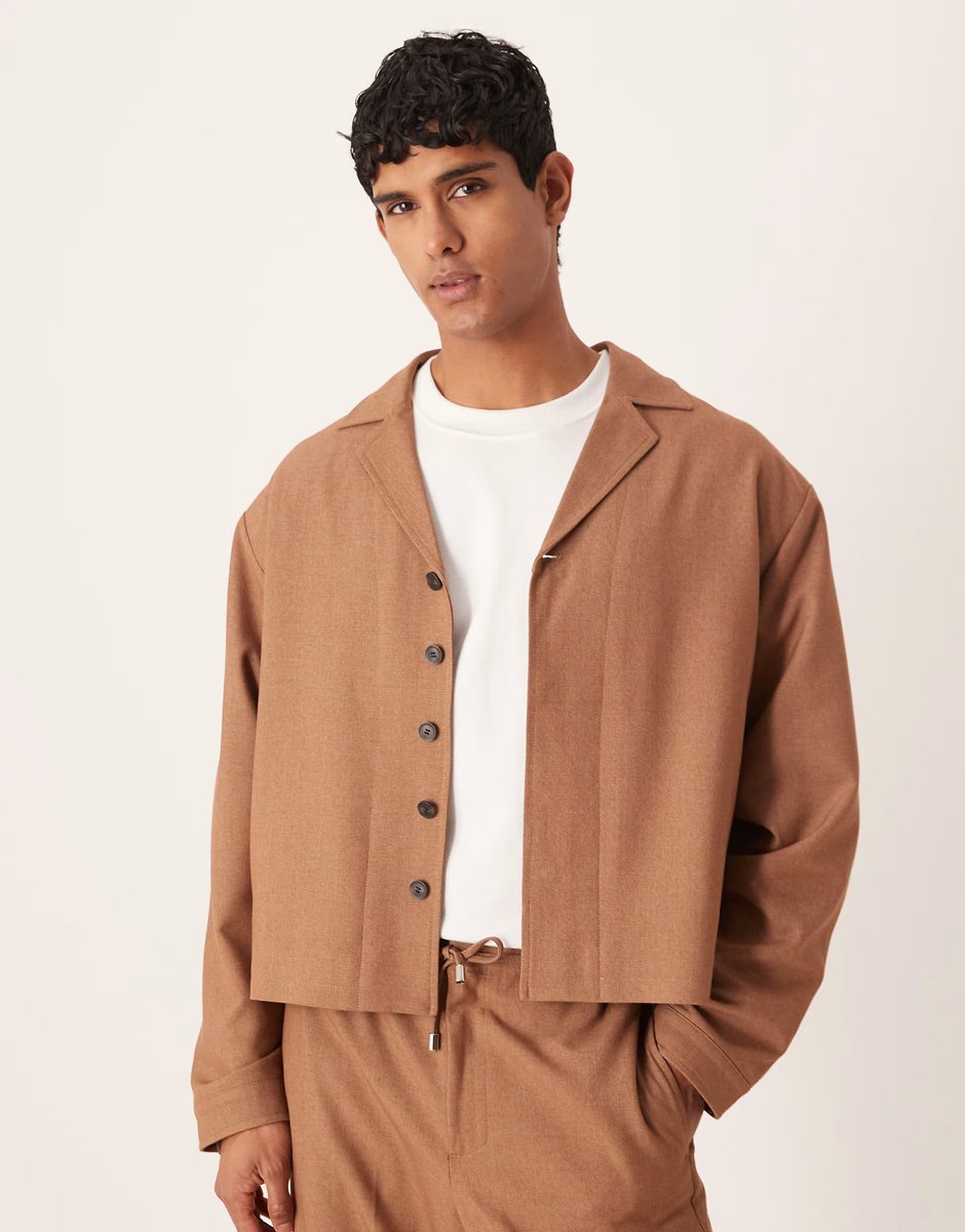 The ASOS DESIGN Smart Co-ord Shirt Jacket in Brown is available in sizes XXXL, XXL, XL, XS, L, M, S.
