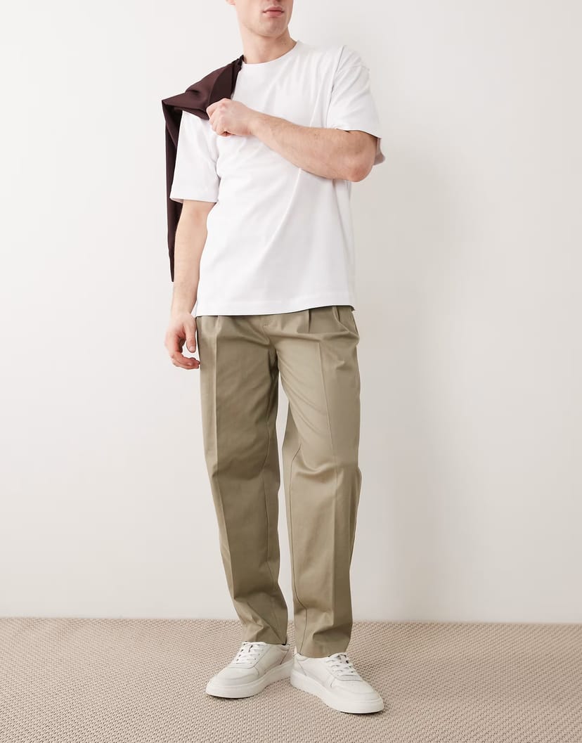 The ASOS Khaki Cotton Rich Oversized Tapered Chinos is ideal for casual, everyday, work.
