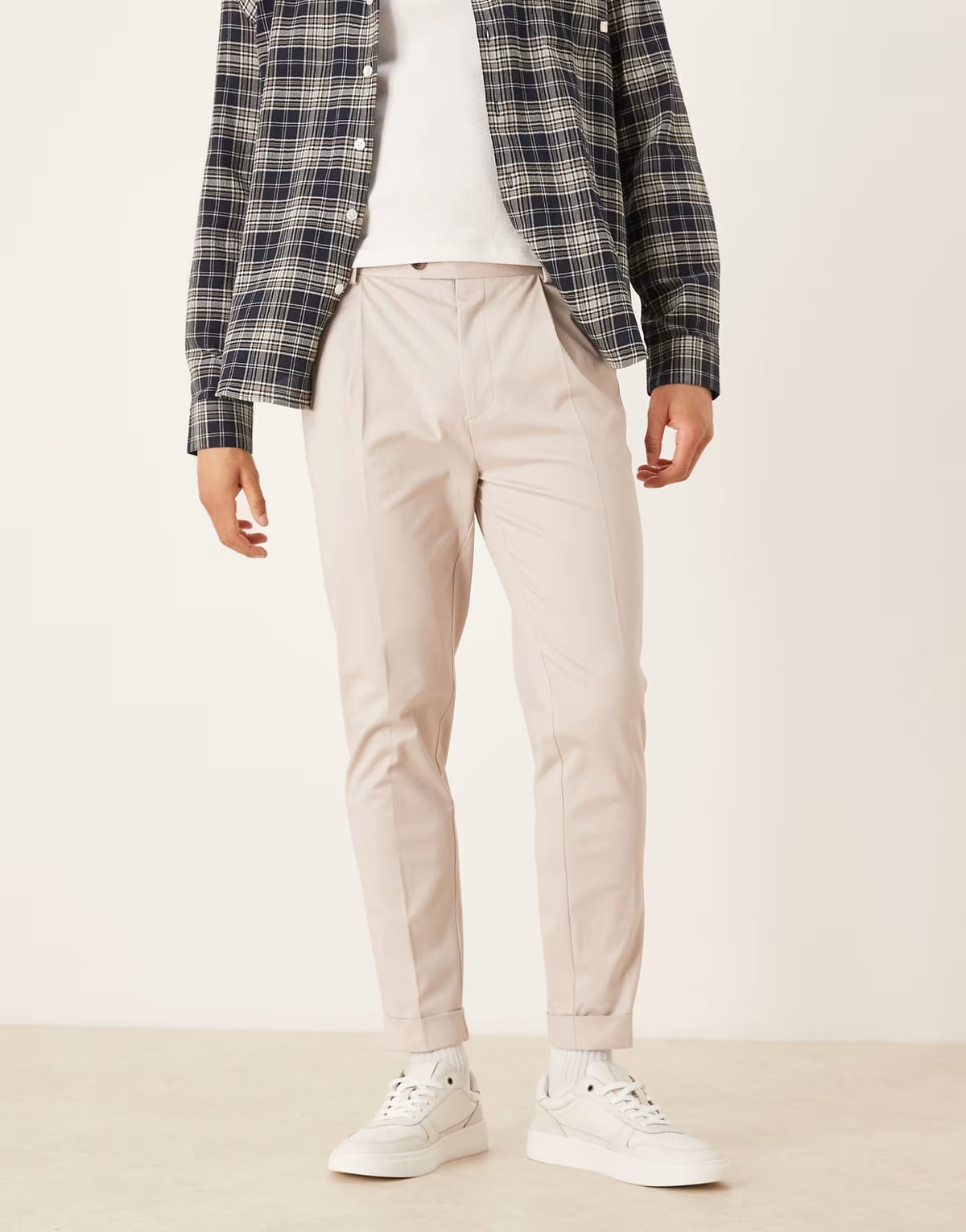 The ASOS DESIGN Smart Tapered Chino Trousers in Stone is ideal for smart-casual, casual.