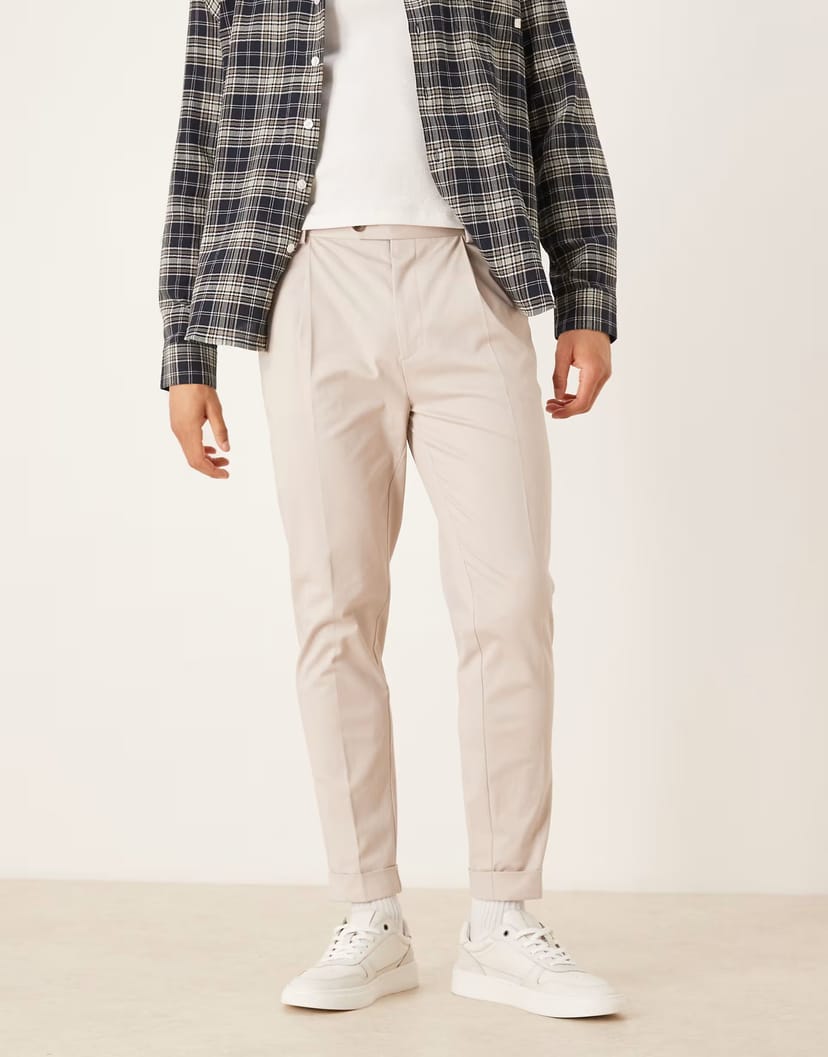 The ASOS DESIGN Smart Tapered Chino Trousers in Stone is made from cotton.