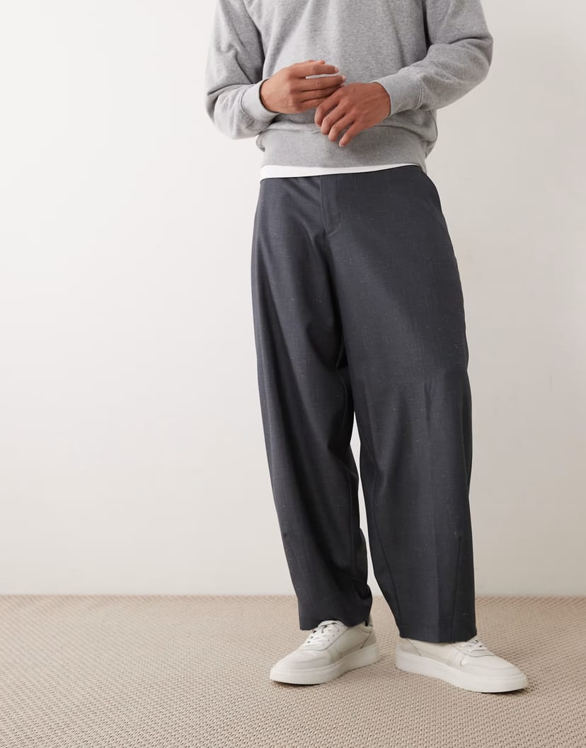 The ASOS DESIGN Smart Denim Look Barrel Trousers in Navy is available in sizes XXXL, XXL, XL, XS, L, M, S.
