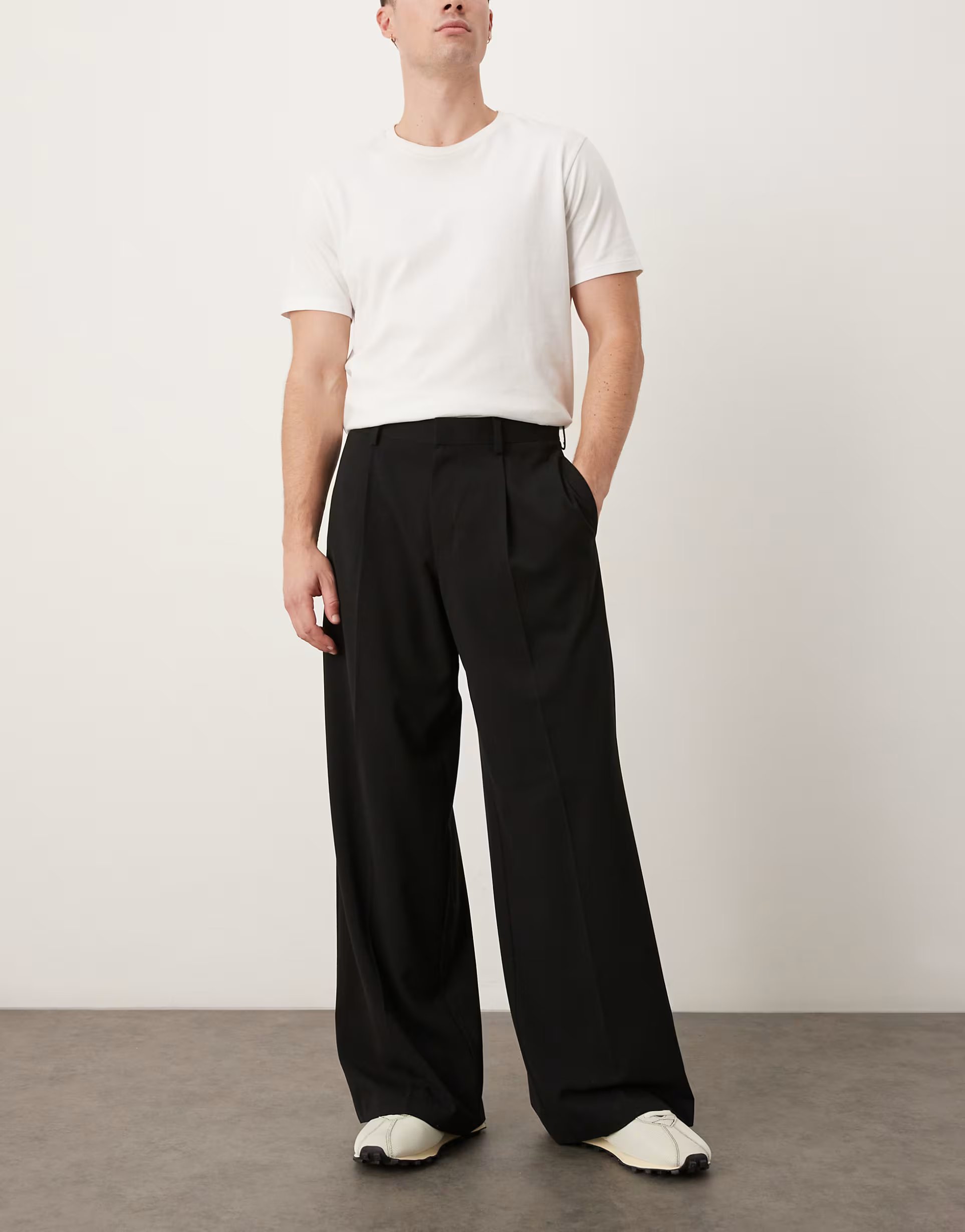 The ASOS Loose Leg Trousers in Black with Front Pleat is available in sizes XXXL, XXL, XL, XS, L, M, S.