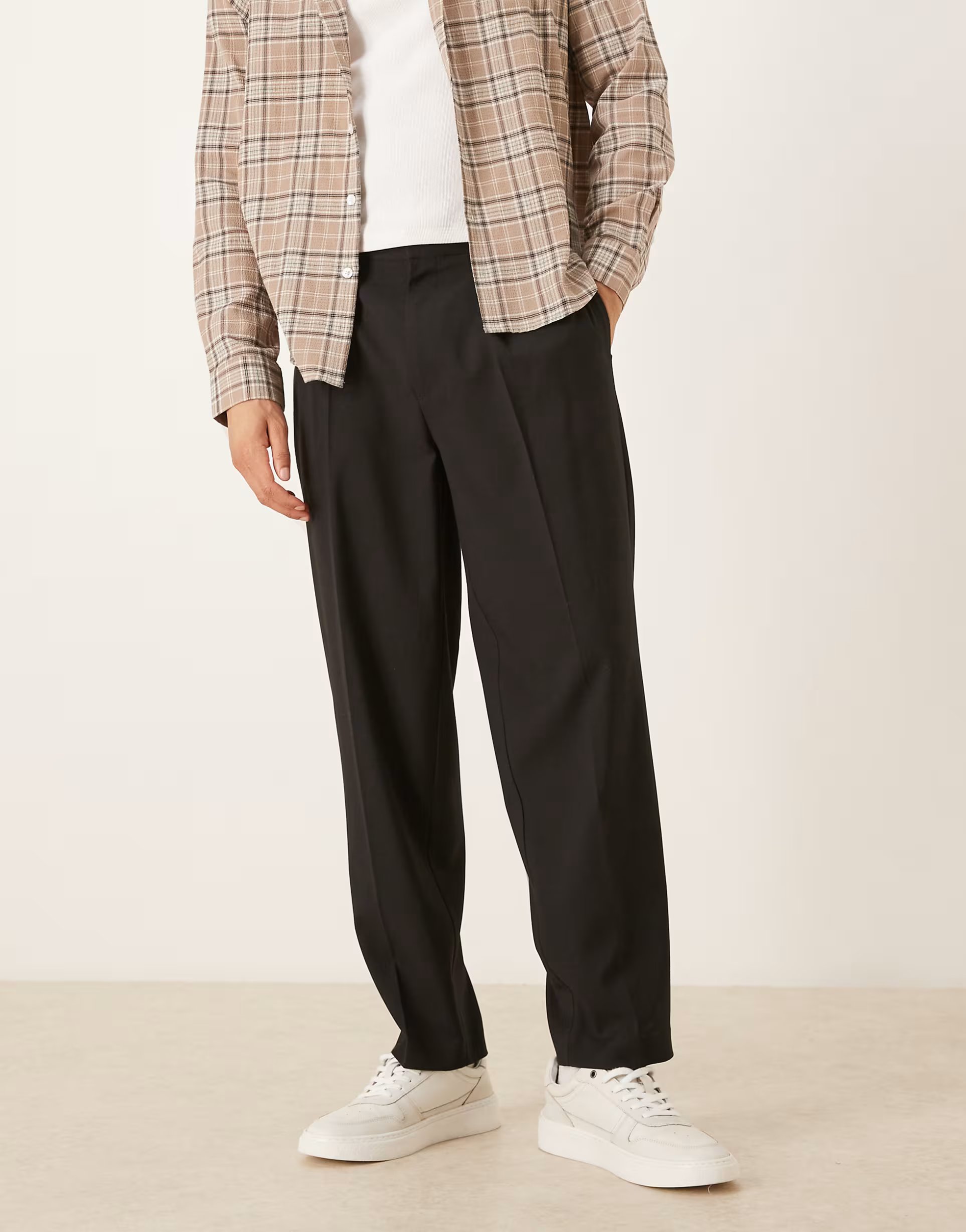 The ASOS Smart Oversized Tapered Pleated Trousers in Black Melange is ideal for casual, smart-casual.
