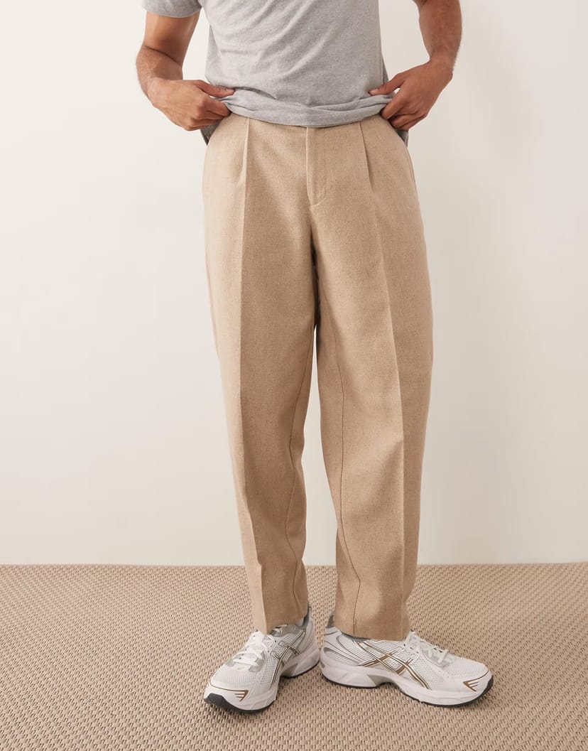 The ASOS Wool Blend Oversized Tapered Trousers in Stone is ideal for casual, everyday, work.