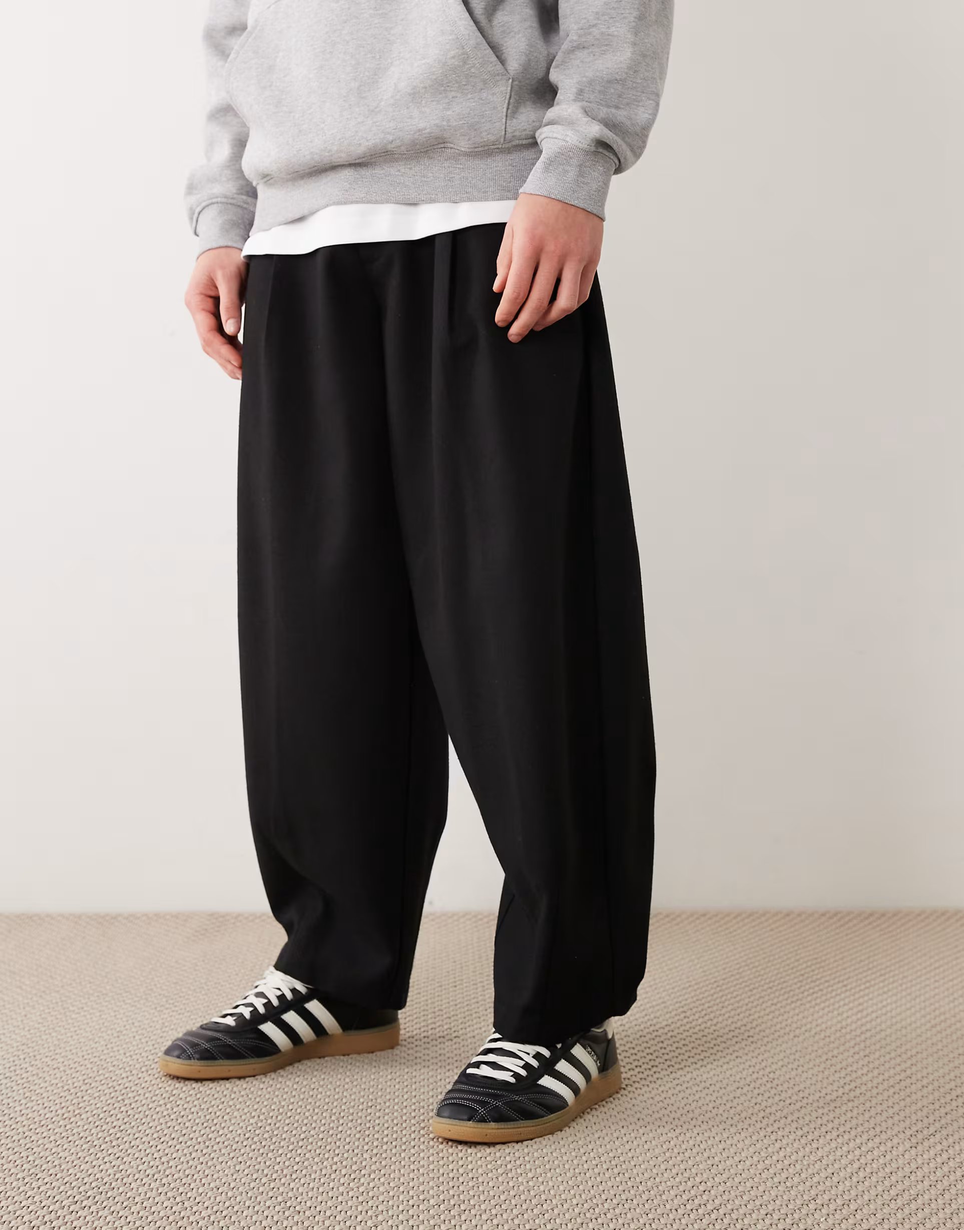 The ASOS DESIGN Smart Pleated Wool Trousers in Black is available in sizes XXXL, XXL, XL, XS, L, M, S.