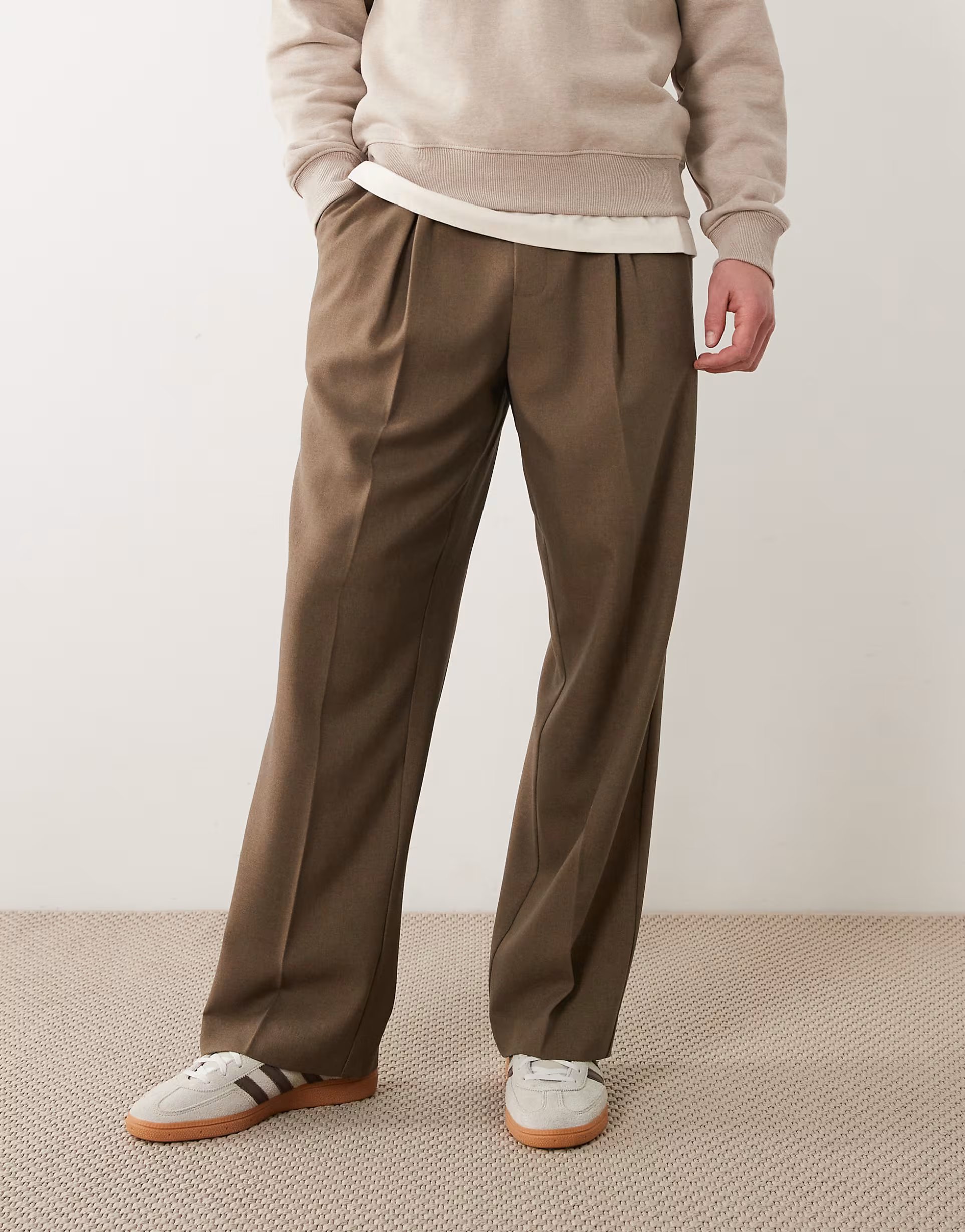 The ASOS DESIGN Smart Wide Leg Trousers in Olive Green is ideal for smart-casual.