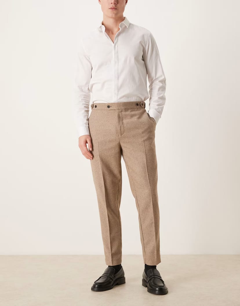 The ASOS Smart Tapered Wool Blend Trousers in Brown is ideal for work, business.
