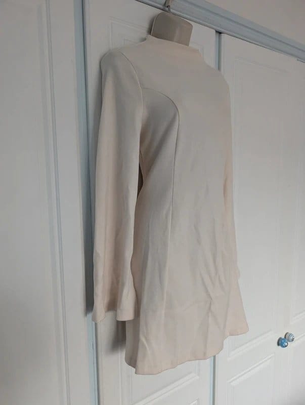 The ASOS Design Cream Fit and Flare Mini Dress is available in sizes M.