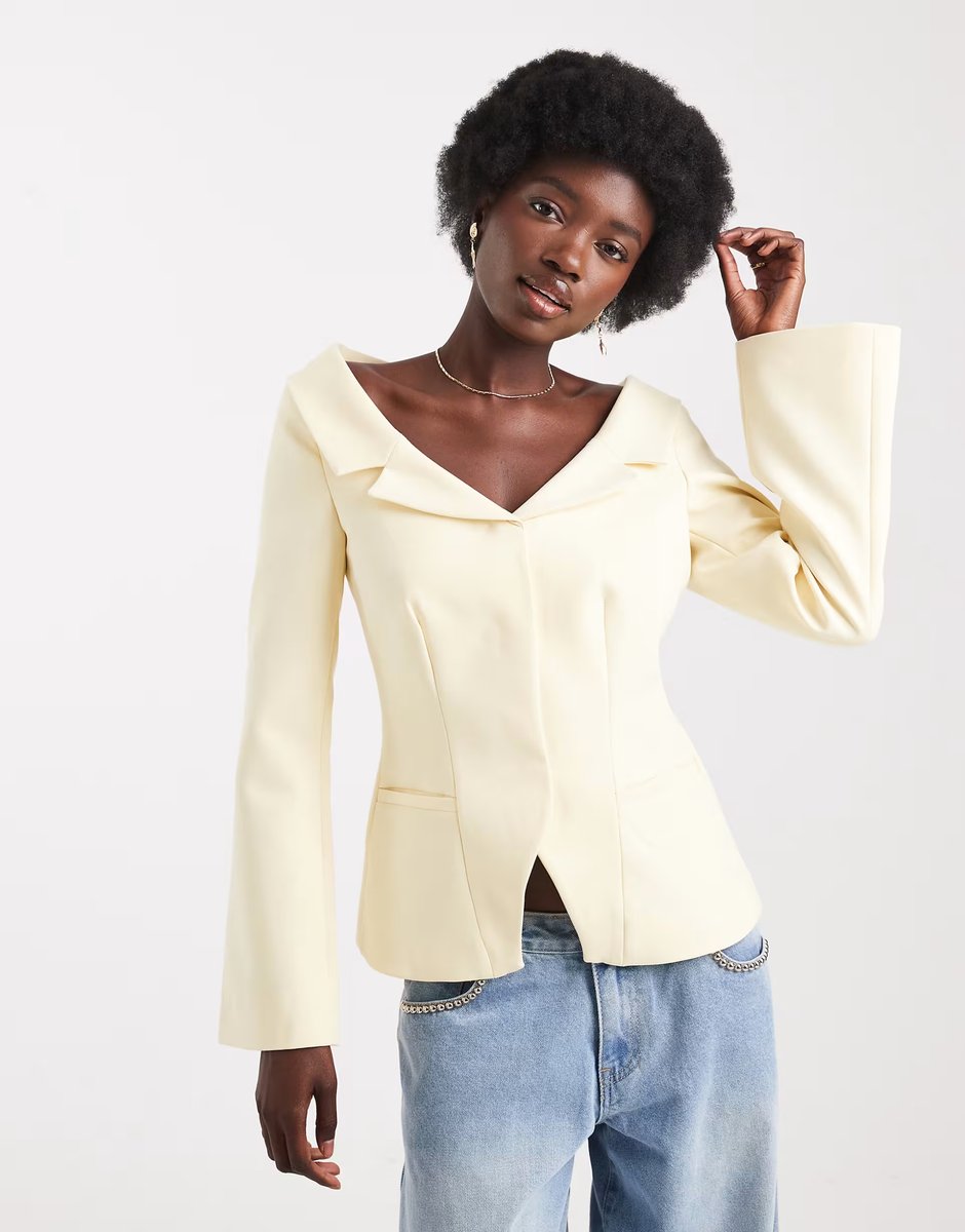 The ASOS DESIGN Tailored Off Shoulder Blazer in Buttermilk is ideal for party, formal.