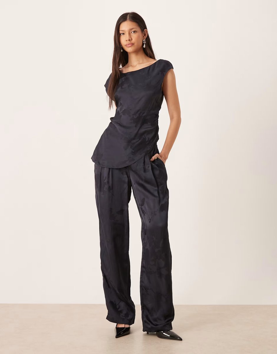 The ASOS DESIGN Ruche Ruffle Co-ord in Navy is ideal for business, business-casual, evening.