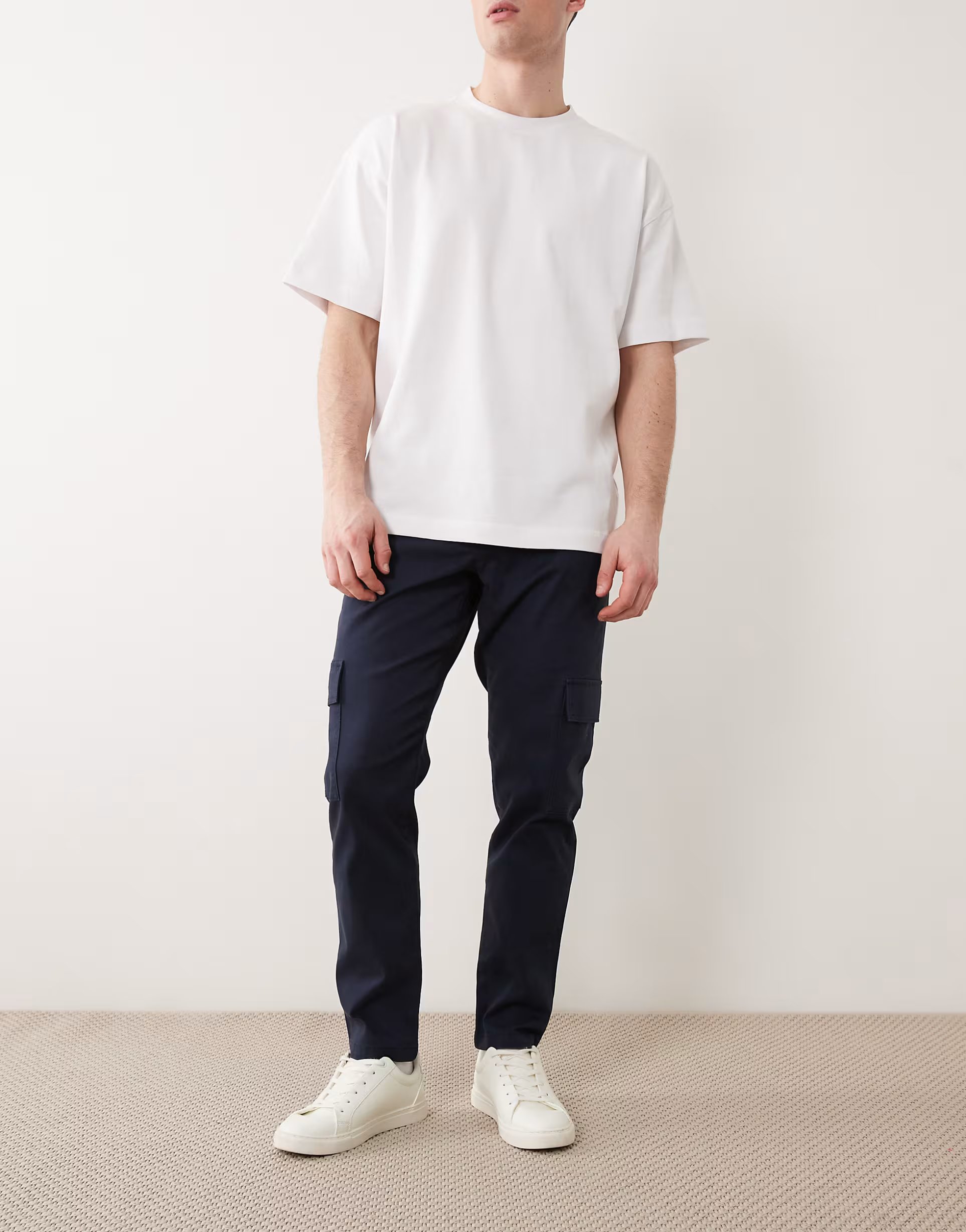 The ASOS Tapered Cargo Trousers in Navy is ideal for casual, smart-casual, work.