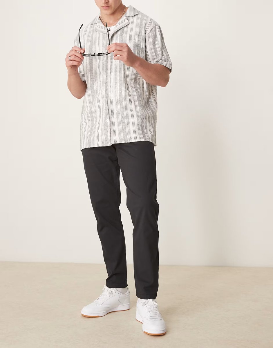 The ASOS DESIGN Slim Fit Tapered Chinos in Black is ideal for casual, smart-casual.
