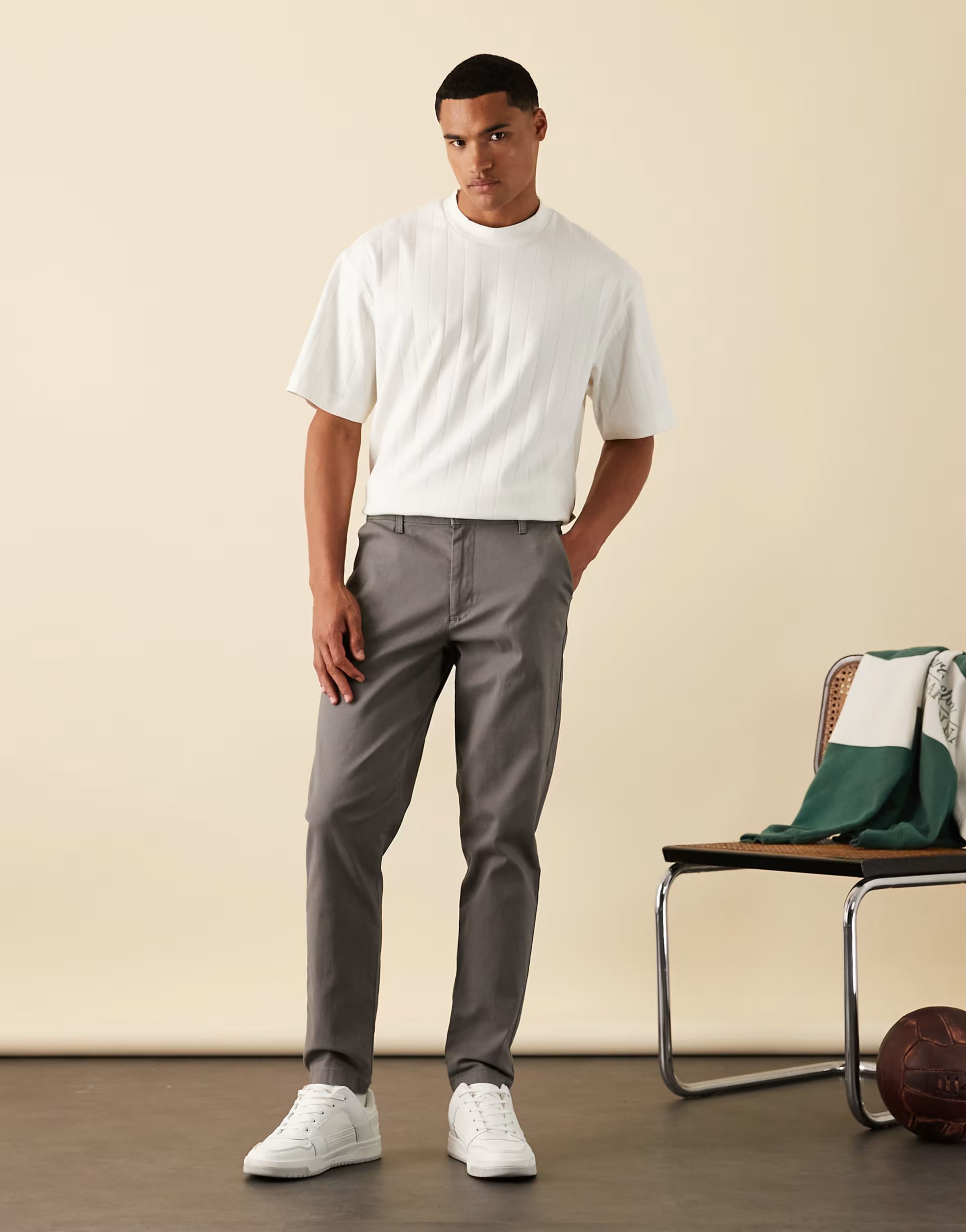 The ASOS Tapered Chinos in Grey is ideal for casual, smart-casual.