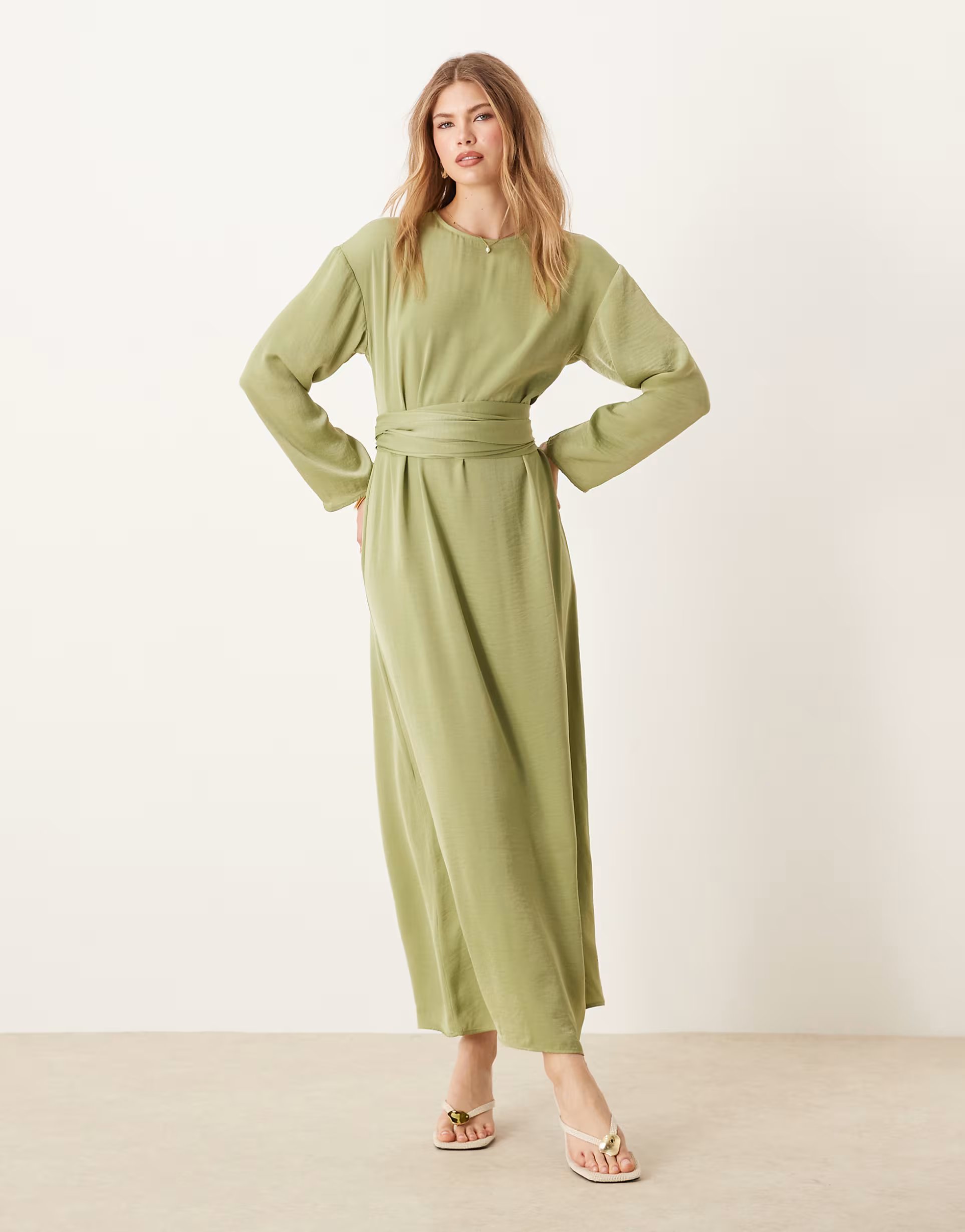 The ASOS Satin Tie Back Maxi Dress in Sage Green is made from satin.