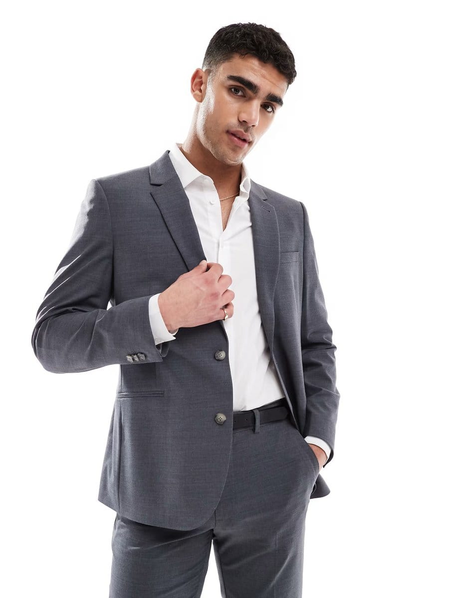 The ASOS DESIGN Slim Fit Charcoal Wool Suit Jacket is ideal for business-casual.