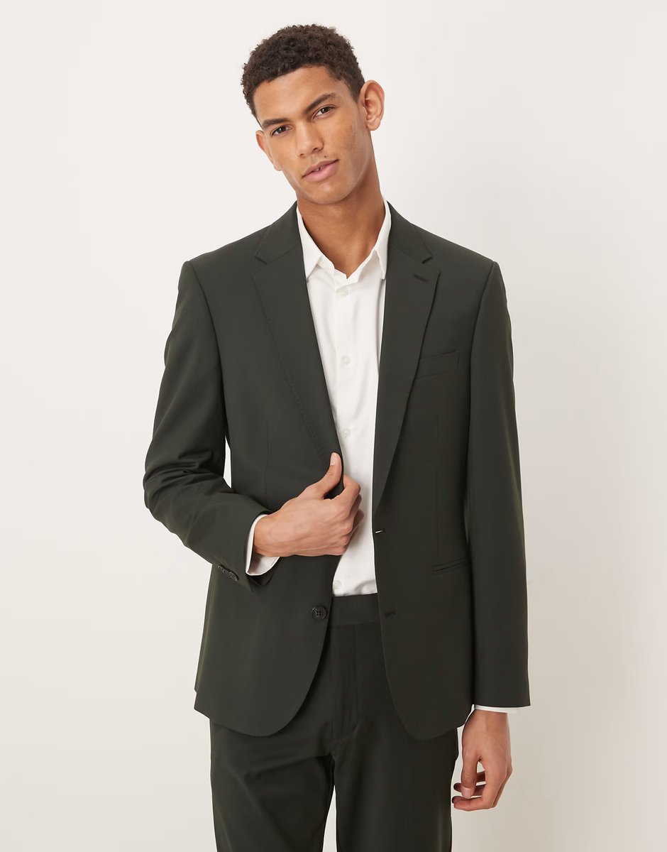 The ASOS DESIGN Dark Green Wool Skinny Suit Jacket is ideal for work, business, smart-casual.