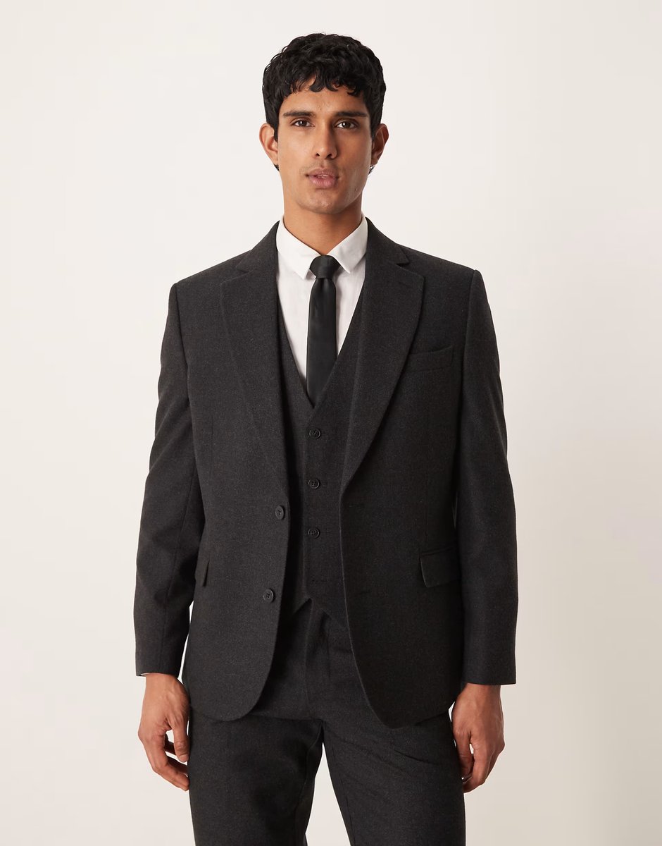 The ASOS Wool Look Slim Suit Jacket in Charcoal is ideal for business, formal.