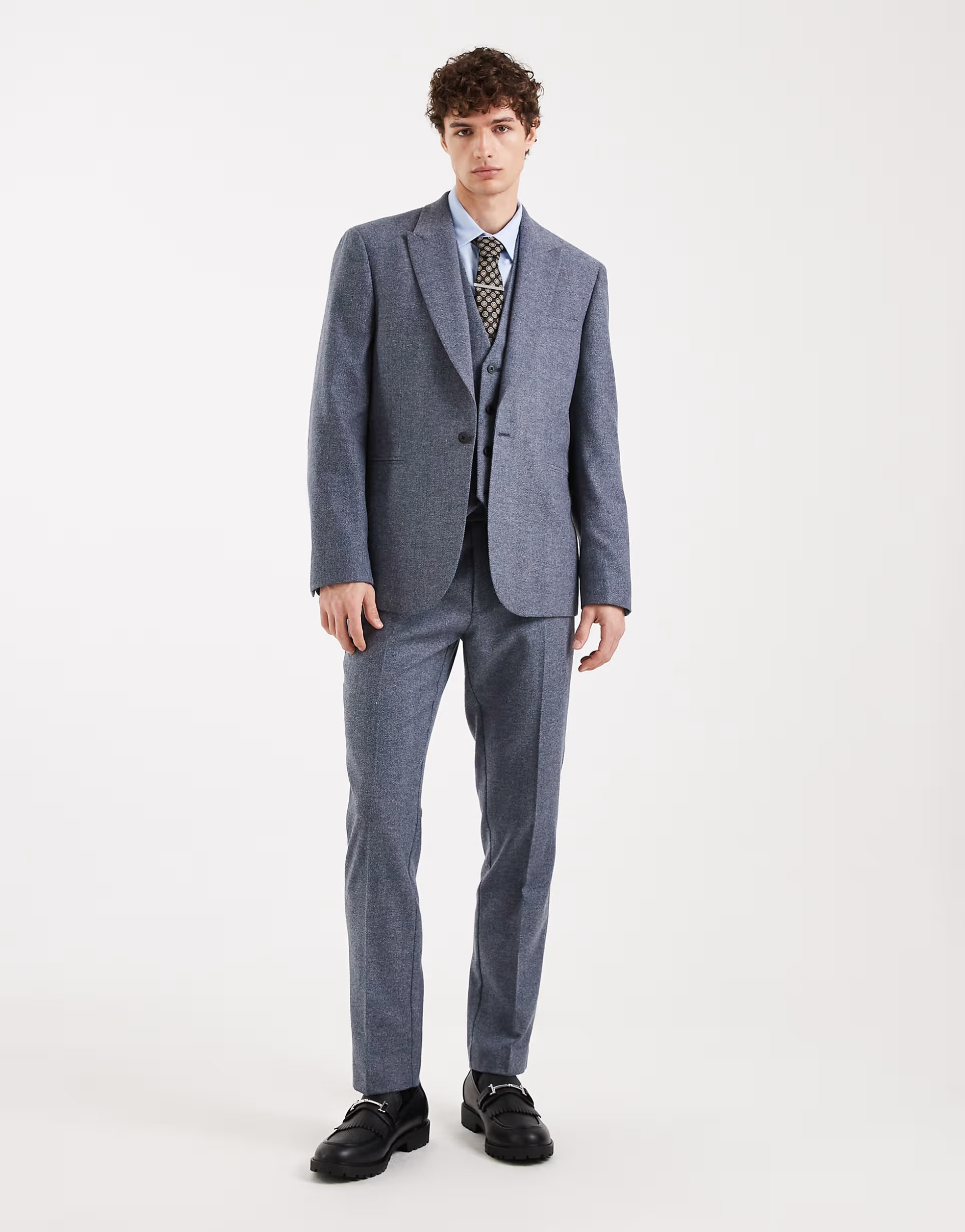 The ASOS Slim Wool Mix Suit Trousers in Grey Herringbone is made from wool, polyester, elastane.