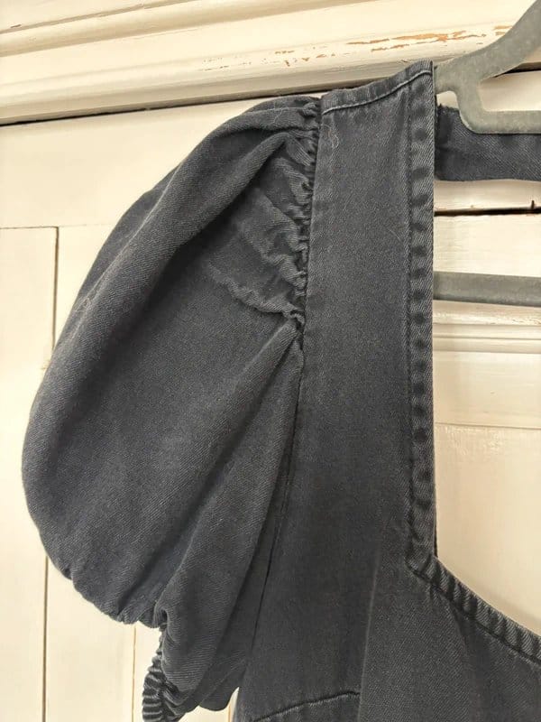 The ASOS Black Denim Puff Sleeve Dress is available in sizes M.