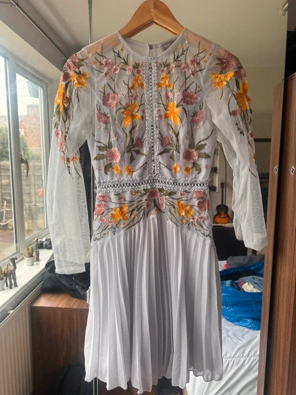 The ASOS Floral Print Midi Dress with Long Sleeves in Lilac is available in sizes S.