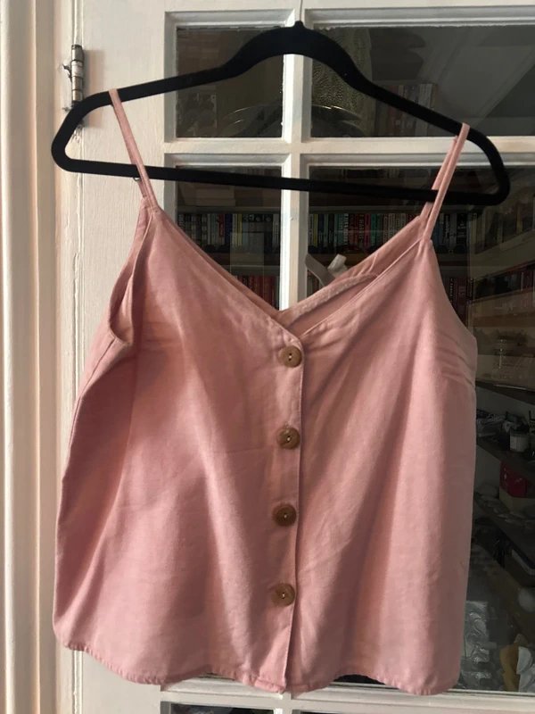 The ASOS Dusty Pink Linen Top is available in sizes S.