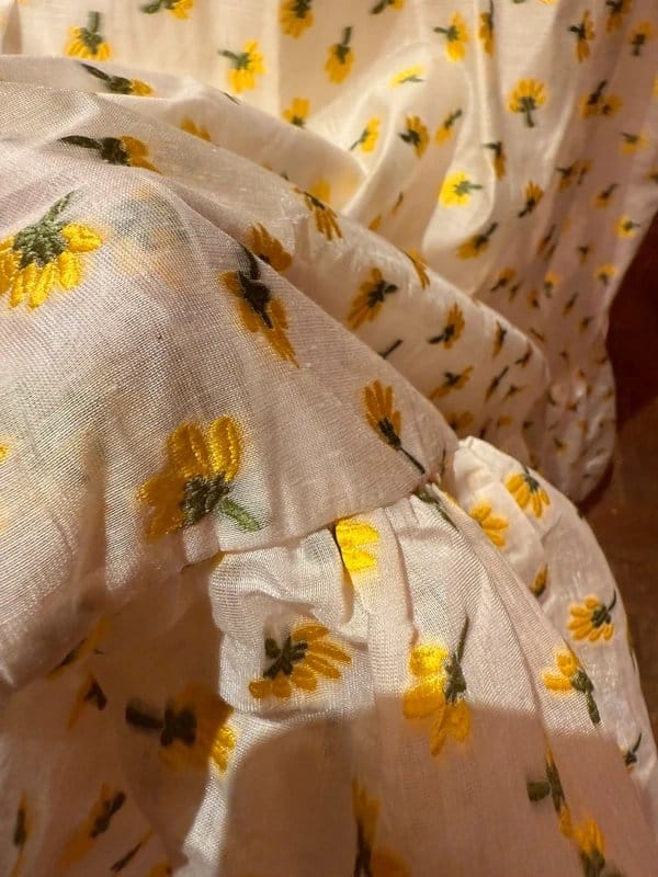 The ASOS Yellow Floral Luxe Dress Size 18 is made from cotton.