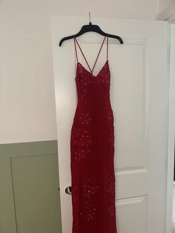 The ASOS Embellished Crochet Hot Pink Maxi Dress is ideal for evening, party, formal.