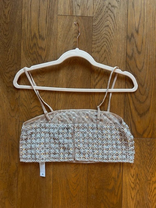 The ASOS Embellished Beige Crop Top is available in sizes S.