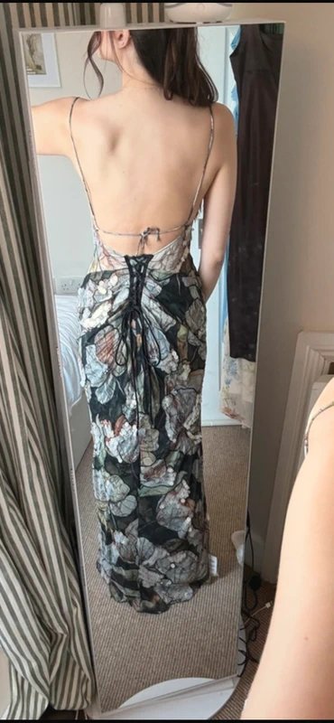 The ASOS Embellished Midi Dress in Grey and Khaki is available in sizes S.