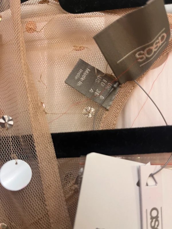The ASOS Embellished Beige Midi Dress is available in sizes S.