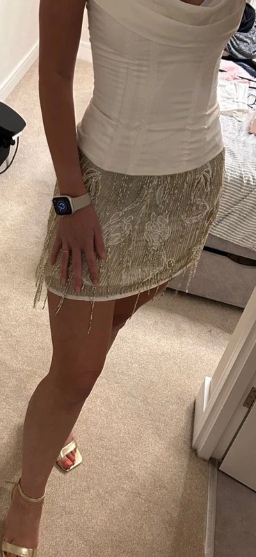 The ASOS Embellished Mini Skirt in Gold is available in sizes S.