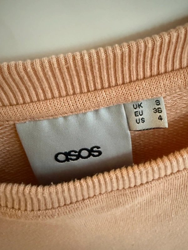 The ASOS Embellished Sleeve Top in Apricot is made from sweatshirt material.