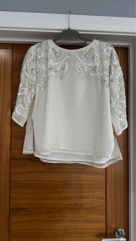 This oversized white/off white embellished top from ASOS adds a touch of glamour to any outfit. Perfect for a casual day out or an elegant evening.