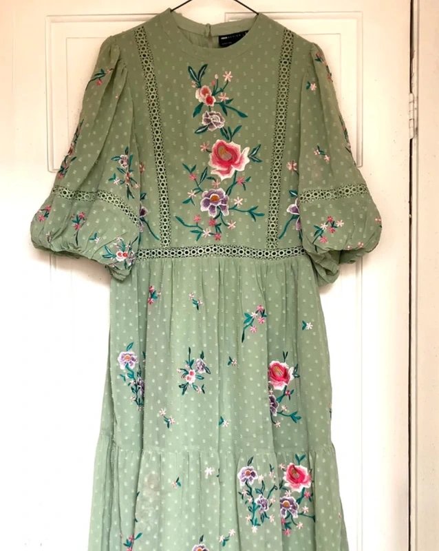 The ASOS Embroidered Floral Midi Dress is available in sizes M.